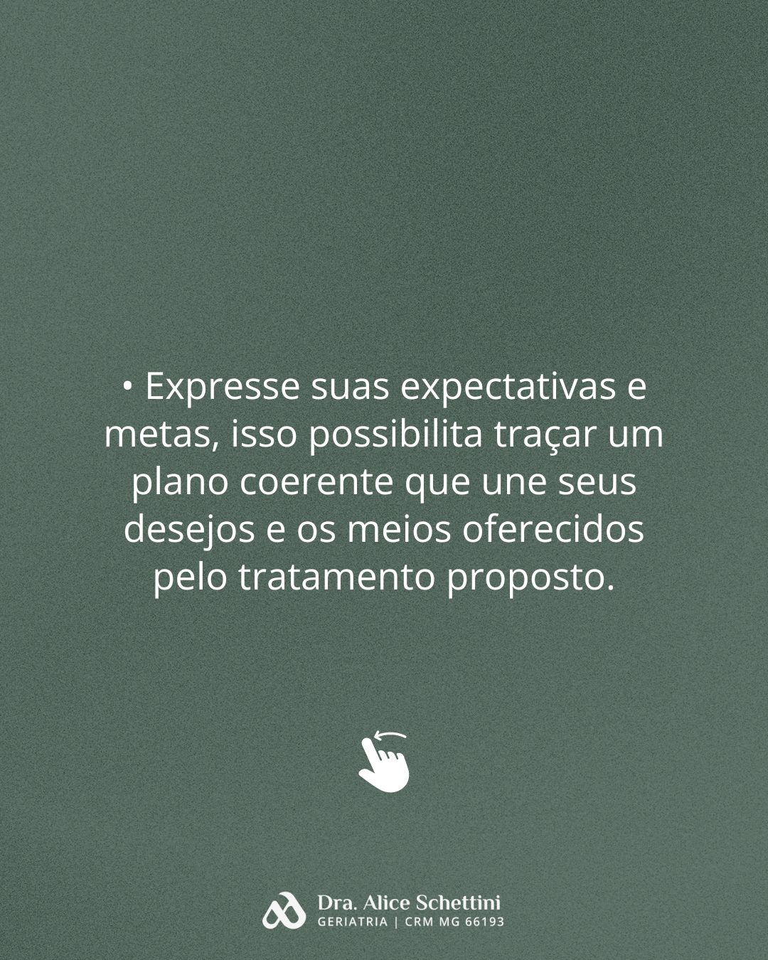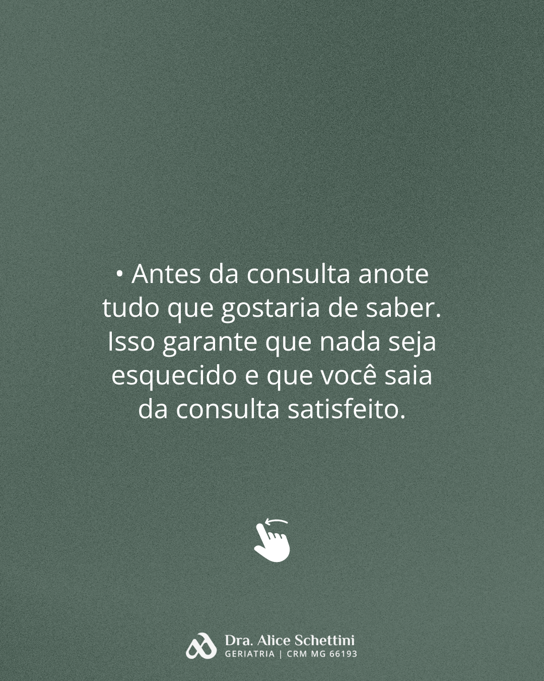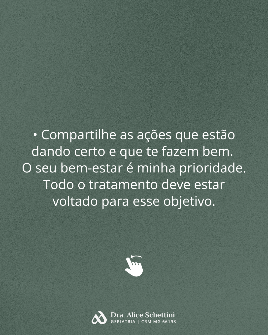 O geriatra é o médico que trata do envelhecimento humano, através de uma avaliação sistemática do paciente, com foco em qualidade de vida. Diferencia as alterações funcionais próprias do processo natural de envelhecimento das alterações patológicas ocorridas nessa fase da vida. Quando procurar um geriatra? prevenção: orientações para envelhecer de forma saudável acompanhamento da senescência (envelhecimento saudável) acompanhamento de doenças já presentes nessa fase de vida Busco olhar de forma ampla sobre o idoso, atentando sempre às suas particularidades, suas necessidades, em busca da promoção da qualidade de vida. Acolher o paciente e sua família, esclarecendo diagnóstico e acompanhando o paciente em todos os momentos é fundamental